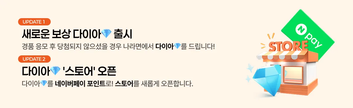> 보상을 통해 다양한 혜택을 누릴 수 있습니다. 획득한 다이아는 <스토어>에서 네이버페이 포인트로 교환 가능하니, 많은 이용 부탁드립니다!